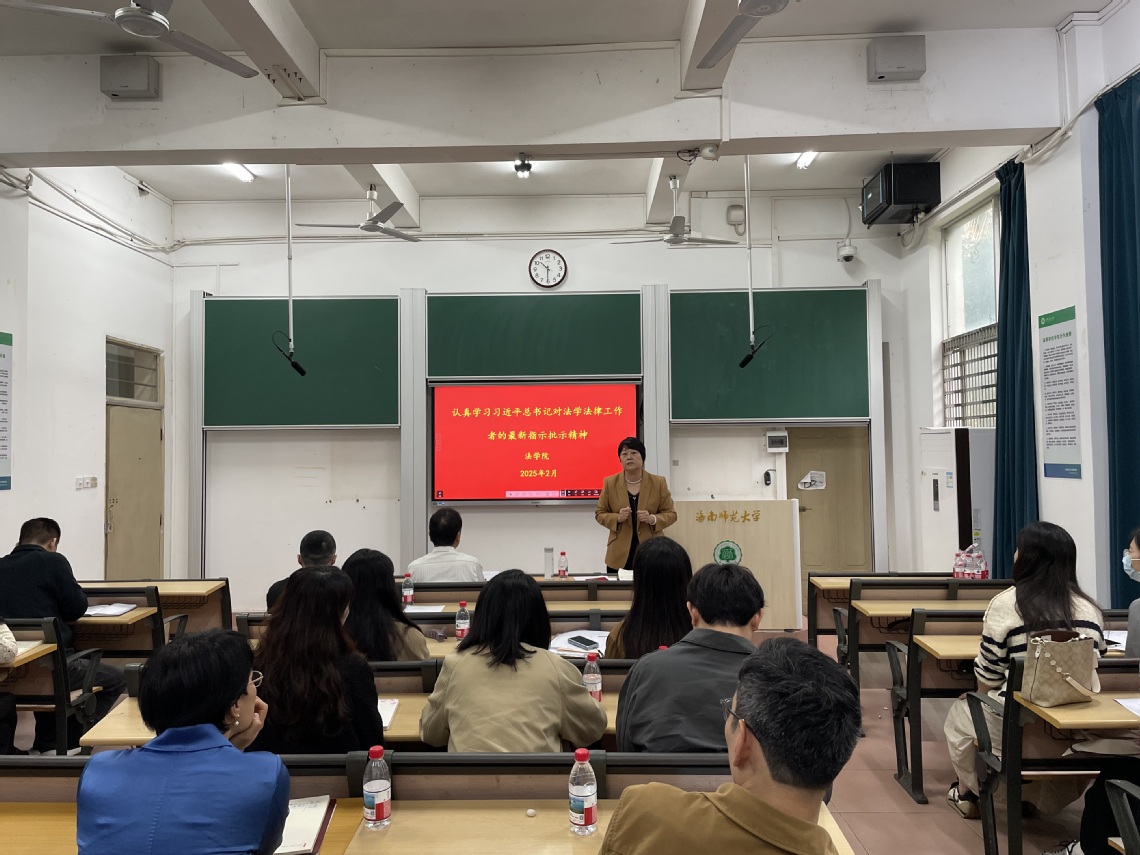 最后,张霞院长作了总结发言,从人才培养、师资队伍、教风学风、学科建设、申报课题等方面对全院教师提出新要求,希望全院教职工团结奋进、守正创新,共同推动学院高质量发展。张院长首先带领教职工再次回顾并认真学习习近平总书记对法学法律工作者的最新指示批示精神:“扎实做好繁荣法学研究、服务法治实践、加强法治宣传、培养法治人才等工作,努力开创法学会事业发展新局面。”张院长叮嘱大家围绕深入学习贯彻党的二十届三中全会和全国教育大会精神,立足落实立德树人根本任务,对照学校确立的目标任务,研讨法学院2025年度工作计划的目标、任务和举措,全面梳理工作重点难点,系统部署学院2025年度重点工作。张院长指出,2024年我院在学校党委的坚强领导下,全院上下团结一心、攻坚克难,学院各项工作取得了可圈可点的好成绩。2025年是“十四五”规划实施收官之年、“十五五”发展谋篇布局之年,是海南自贸港封关运作、扩大开放之年,也是学校建设全国一流师范大学的全面发力之年。