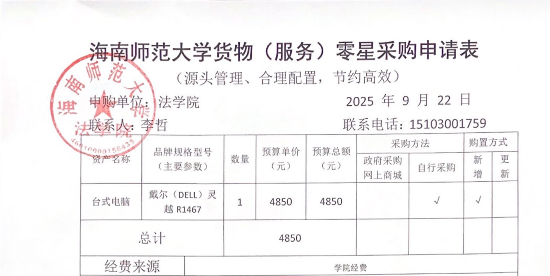 关于李哲老师购买台式电脑的公示