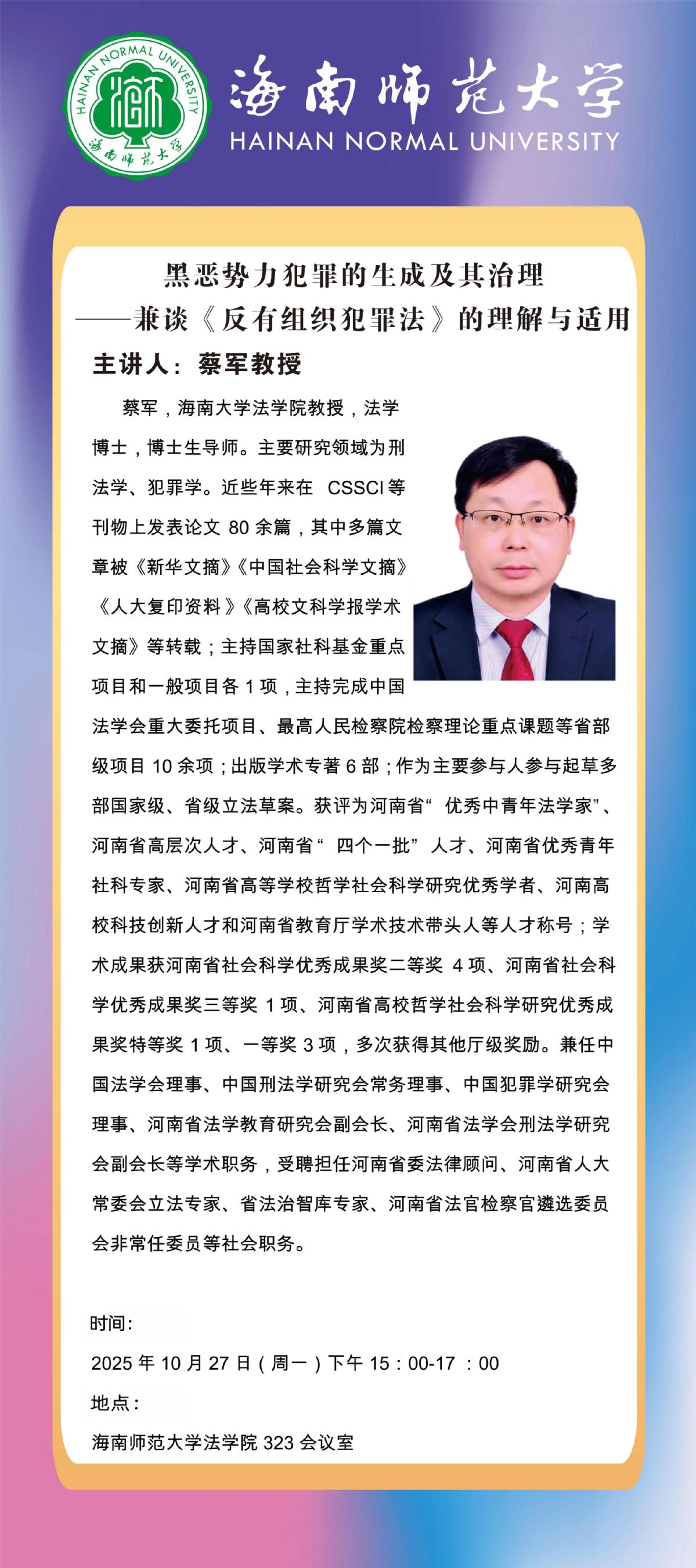 主讲嘉宾:蔡军(海南大学法学院教授、博士生导师)