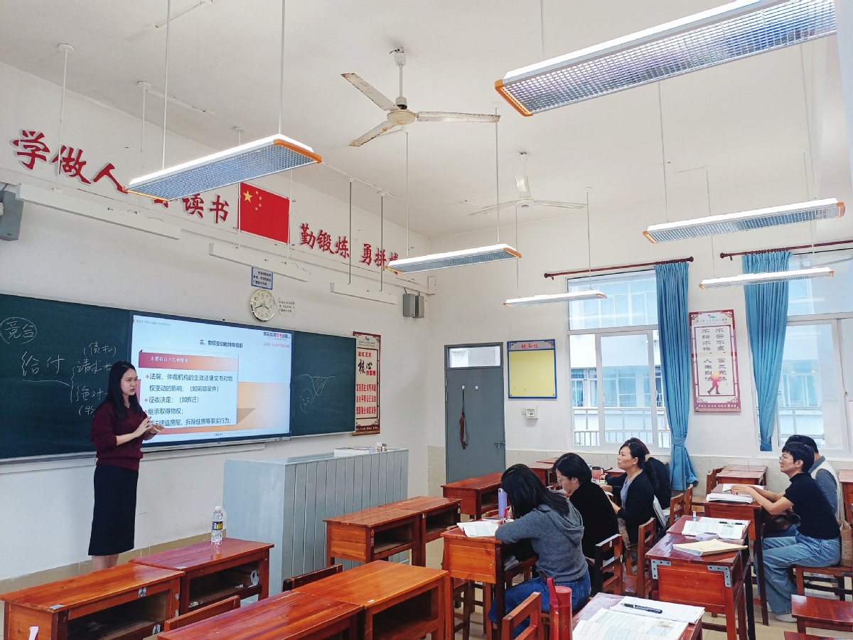 授课中,王帆老师结合自身丰富的教学研究与实务经验,通过生动的案例分析,深入浅出地讲解了《民法典》总则编、物权编、合同编、侵权责任编中的基本法律知识。她不仅巧妙地将法律与生活相融合,还就一线教师在实际教学中遇到的法律困惑进行了现场答疑。整场授课内容充实、“干货”满满,现场互动频繁,气氛热烈。