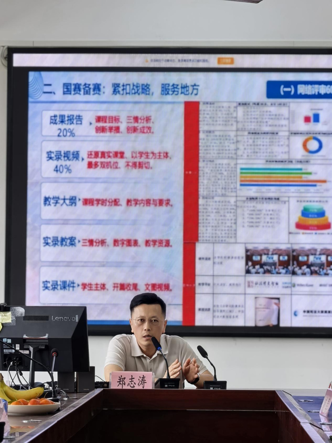 座谈会上,郑志涛主任结合自身荣获第五届全国高校教师教学创新大赛国家级奖项的实践经历,从参赛要求、材料准备、教学设计、方法创新到现场汇报技巧等方面进行了系统阐述,并分享了备赛全过程中的注意事项及心得体会,特别强调教学创新应立足学生需求,聚焦真实问题,融入实践场景。郑志涛主任结合具体案例,剖析了教学创新大赛评审标准的内在逻辑,指出参赛课程应凸显高阶性、创新性和挑战度,同时注重教学资料的积累与教学成效的可视化呈现。随后,与会教师展开深入探讨和交流,现场气氛热烈。