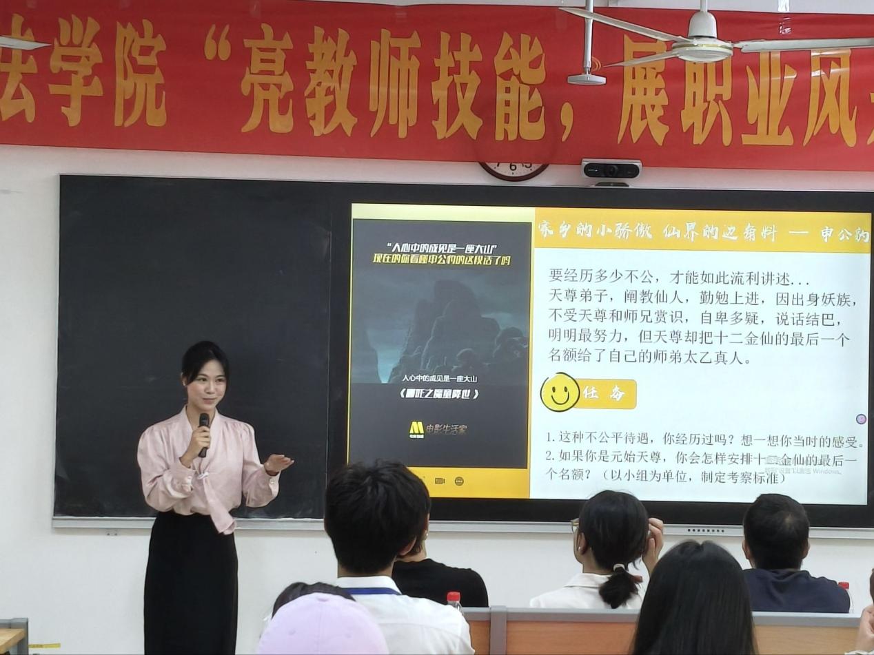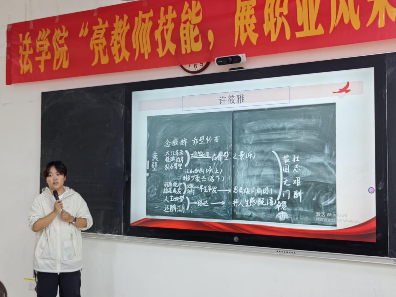 本次比赛包括板书技能、模拟课堂教学、教师口语技能、班主任技能五个板块,各位选手以专业为基、以热爱为翼,将法学素养与教学技能深度融合,展现出扎实的知识储备、清晰的逻辑思维与从容的表达风采。