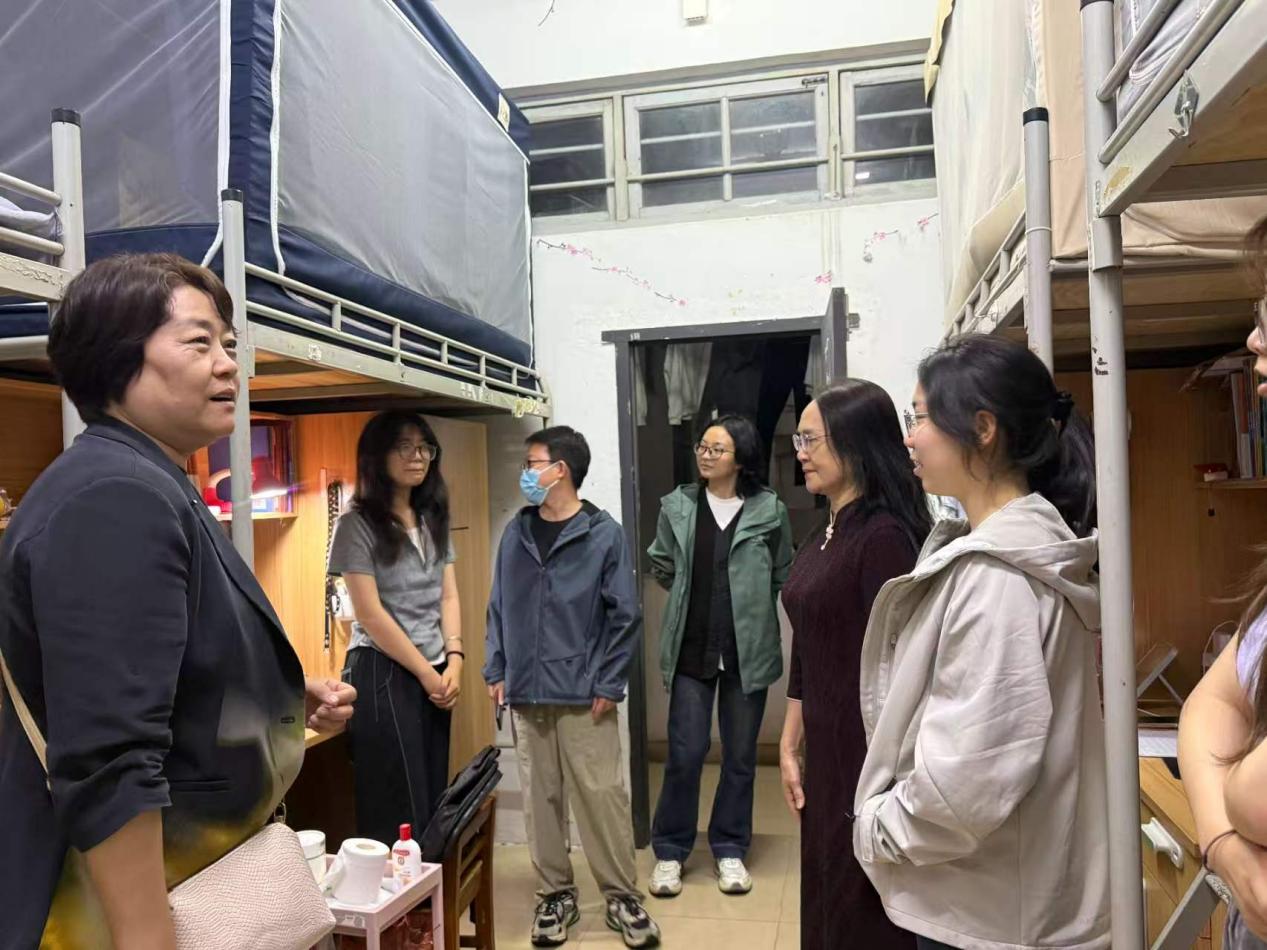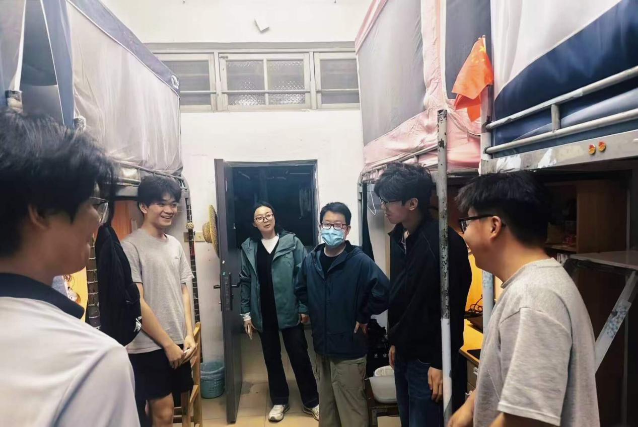3月8日,开学走寝工作中,法学院院长张霞,正处级辅导员李秋花,研究生辅导员钱于立,本科生辅导员王伟、朱梦飞深入学生宿舍,细致了解同学们的返校情况,叮嘱大家注意宿舍用电、用水安全,保持宿舍环境卫生,及时调整作息,快速从假期模式切换至学习模式,同时耐心解答同学们新学期的各类疑问,让同学们感受到学院的暖心关怀。