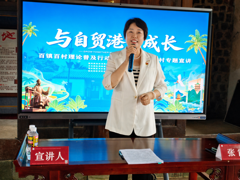 启动仪式后,首场专题宣讲同步展开。张霞院长以《自由贸易港背景下的传统村落建设和乡村振兴》为题,围绕高林村历史文化资源保护、乡村法治建设路径、自贸港发展机遇等内容进行深入讲解。宣讲既立足理论高度,又紧贴乡村发展实际,以通俗生动的语言回应基层关切,为现场干部群众带来了一场有深度、有温度的分享。